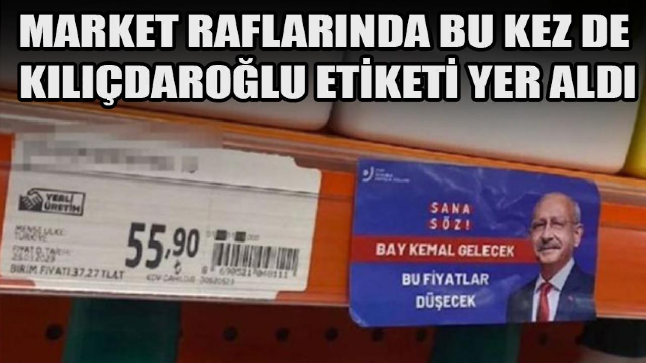 Hayat pahalılığını gündeme getirmek amacıyla yapılan etiketler bu sefer de Millet İttifakı’nın cumhurbaşkanı adayı CHP Genel Başkanı Kemal Kılıçdaroğlu’nun olduğu “Sana söz bu fiyatlar düşecek” yazılı etiketlerin yer almasıyla devam etti.