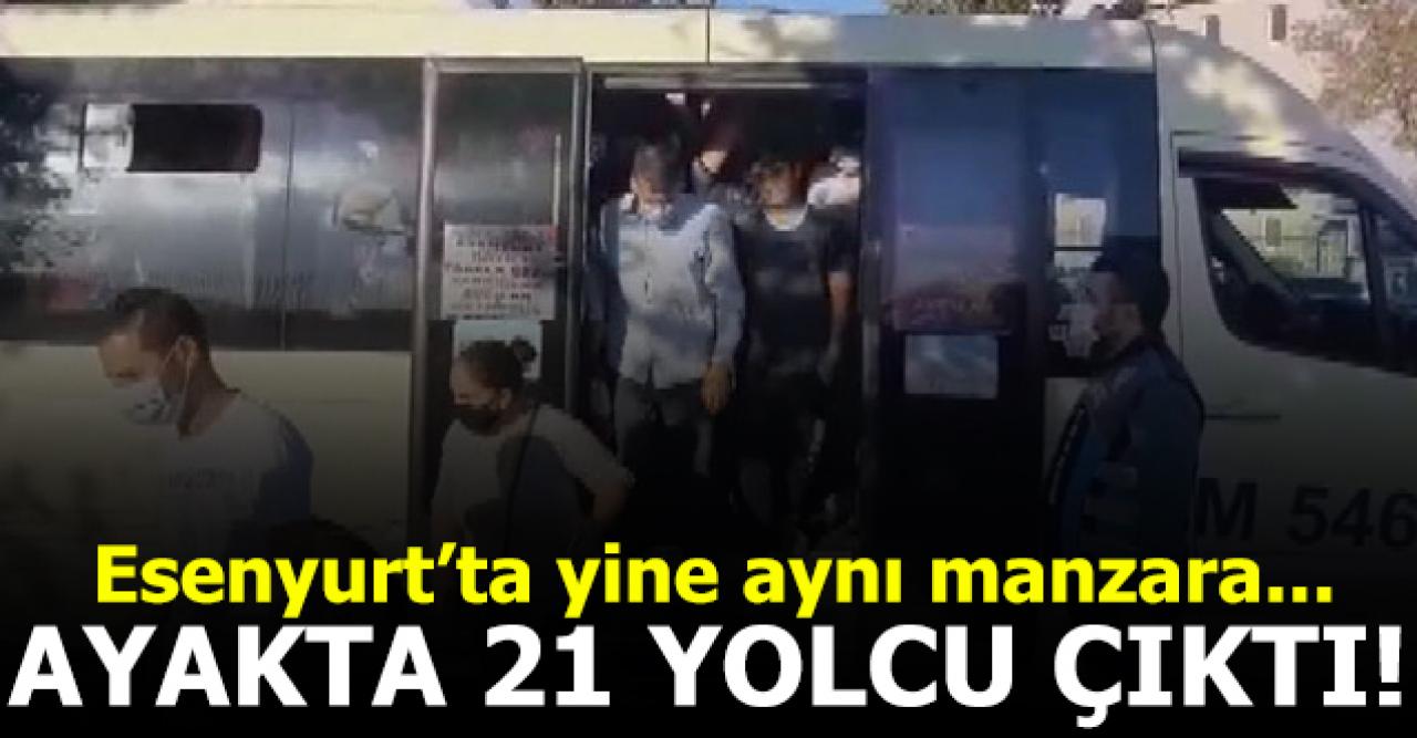 İstanbul Esenyurt'ta toplu ulaşım araçlarına getirilen ayakta yolcu yasağına uyulmamasına yine devam edildi. Trafik ekiplerinin yaptıkları denetimde bir minibüsten ayakta 21 yolcu çıktı.