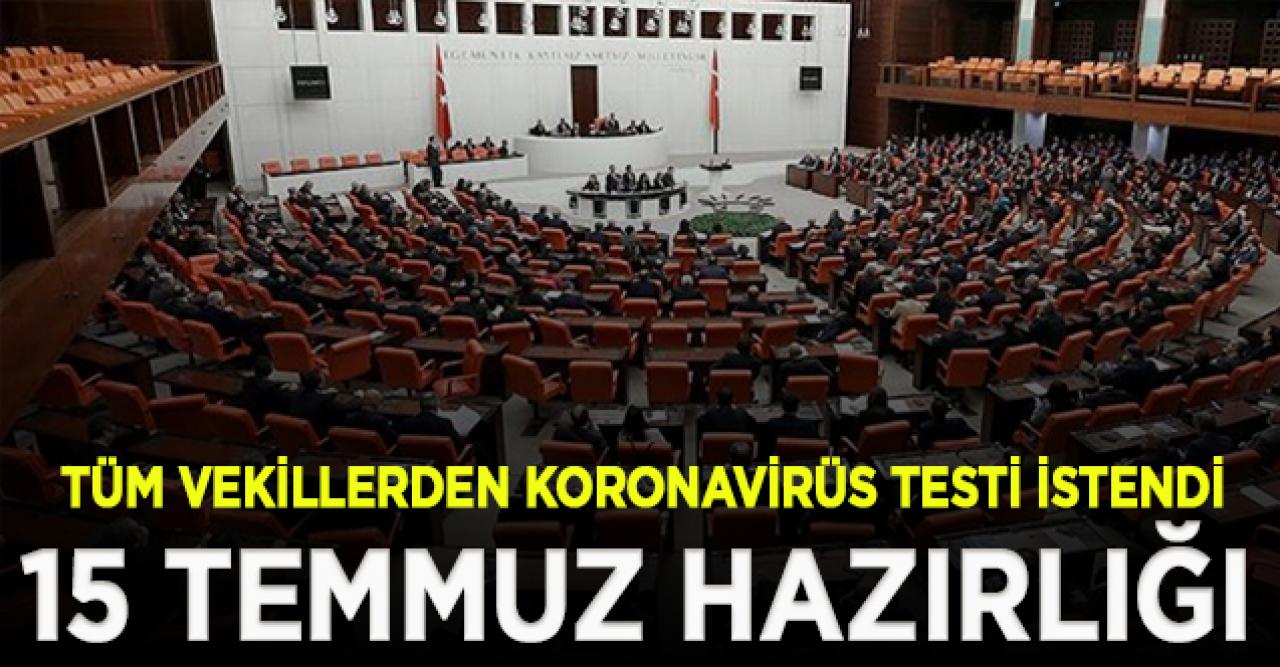 TBMM'de yarın yapılacak olan ve Cumhurbaşkanı Recep Tayyip Erdoğan'ın da katılacağı 15 Temmuz töreni öncesi, törene katılacak tüm milletvekillerinden koronavirüs (Kovid-19) testi yaptırmaları istendi. İYİ Parti Genel Başkanı Meral Akşener'in törene katılacağı ve test yaptırdığı öğrenildi.