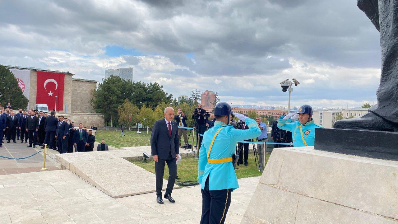 TBMM'de yeni yasama yılının başlaması nedeniyle ilk tören Atatürk Anıtı'nda düzenlendi. Törene, TBMM Başkanı Numan Kurtulmuş, Meclis Başkan Vekilleri Celal Adan ile Bekir Bozdağ, Ulaştırma ve Altyapı Bakanı Abdulkadir Uraloğlu, İYİ Parti Genel Başkanı Müsavat Dervişoğlu, AK Parti Genel Başkan Vekili Mustafa Elitaş, AK Parti Grup Başkanı Abdullah Güler, grup başkan vekilleri ve milletvekilleri katıldı. Saygı duruşunda bulunulup, İstiklal Marşı'nın okunmasının ardından Kurtulmuş, anıta çelenk bıraktı.