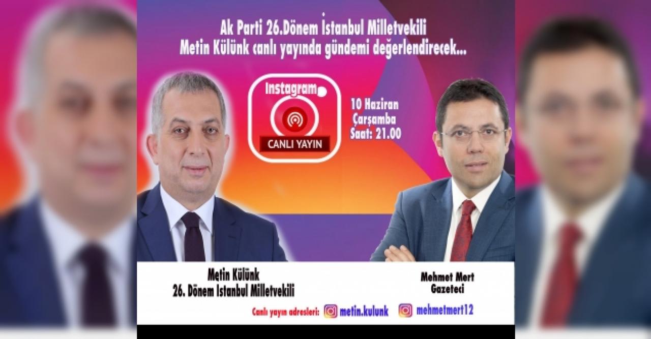 Mehmet Mert 'İstanbul'un başkanları canlı yayında konuşuyor' programında bu akşam Ak Parti 26. dönem İstanbul Milletvekili Metin Külünk'ü konuk edecek. Gündeme ve İstanbul'a dair değerlendirmeler yapacak olan Külünk, önemli açıklamalarda bulunacak.