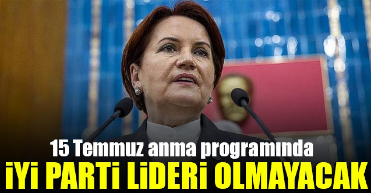 İYİ Parti Genel Başkanı Meral Akşener, 15 Temmuz nedeniyle TBMM'de düzenlenecek olan anma programına katılamayacağını açıkladı.