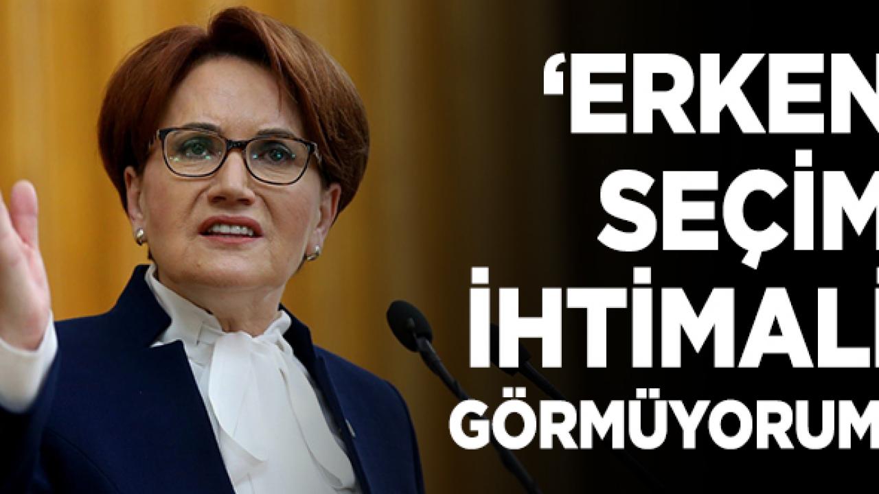 İYİ Parti Genel Başkanı Meral Akşener, katıldığı canlı yayında, erken seçim için mevcut şartların oluşmadığını söyledi. Pandemi sonrası ortak aklın işletilmesi gerektiğini belirten Akşener, "Memleket masasını toplamamız lazım. Böyle bir ortamda uluslararası sisteme karşı da memleket masasındaki fotoğrafın çok önemli olacağını düşünüyorum" dedi