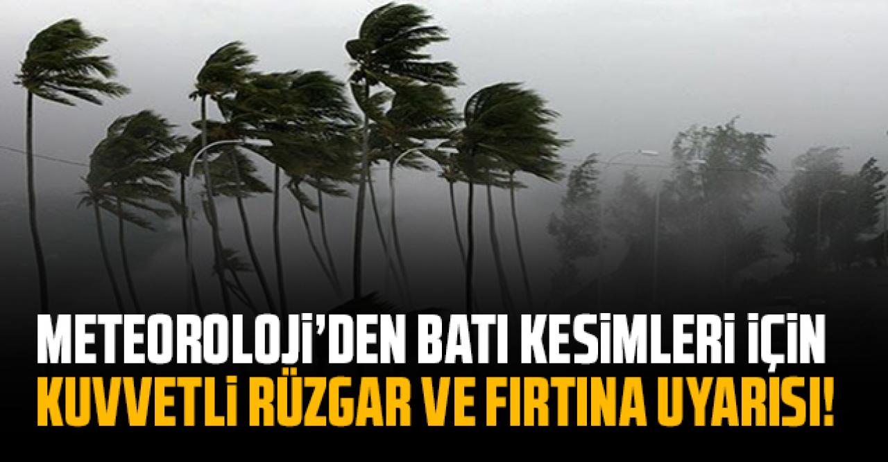 Meteoroloji Genel Müdürlüğü (MGM), yayınladığı hava durumu uyarısında yarın sabah saatlerinden itibaren Türkiye'nin batı kesiminde kuvvetli rüzgar ve fırtına beklendiğini açıkladı.