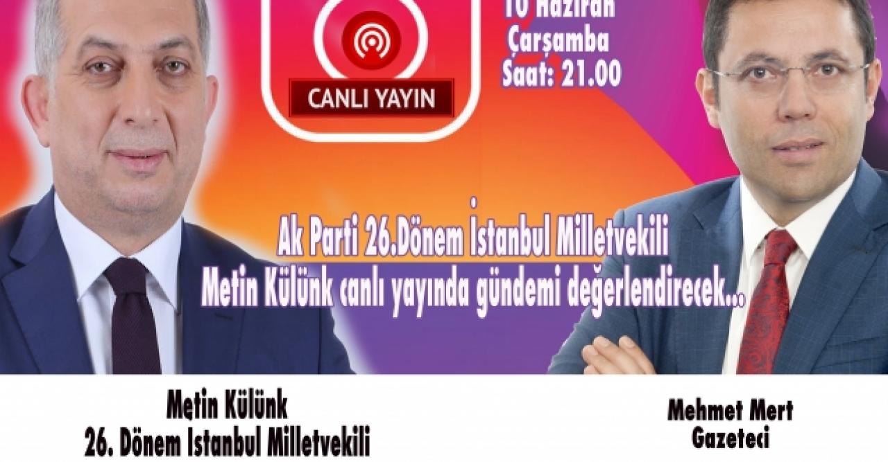 Mert'in bu akşam (10 Haziran Çarşamba) saat 21.00'da canlı yayın konuğu Ak Parti 26. Dönem İstanbul Milletvekili Metin Külünk.