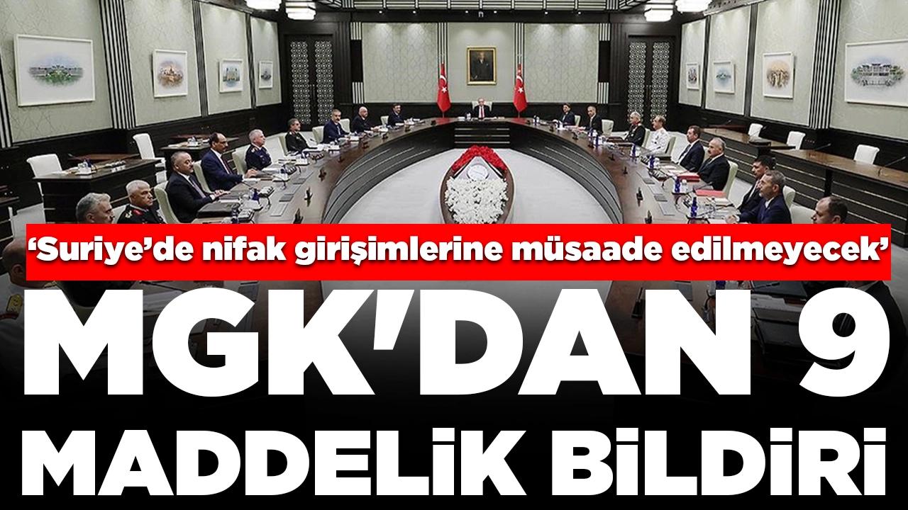 Cumhurbaşkanı Recep Tayyip Erdoğan başkanlığında, Cumhurbaşkanlığı Külliyesi'nde yapılan Milli Güvenlik Kurulu (MGK) toplantısının ardından bildiri yayımlandı.