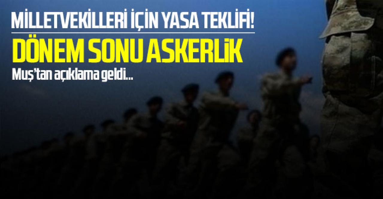 AK Parti yeni yasa teklifi sundu: Askerliğini yapmayan milletvekilleri dönem sonunda bu görevlerini yerine getirecek. AK Parti, Milli Savunma Bakanlığı ile ilgili yeni yasa teklifini bugün Meclis Başkanlığı'na sunacak. AK Parti Grup Başkanvekili Mehmet Muş, "Bugün 44 maddelik Milli Savunma Bakanlığı ile ilgili yasa teklifimizi Meclis Başkanlığına sunuyoruz. Askerliğini yapmayan milletvekilleri dönem sonunda bu görevleri ifa edecekler" dedi.