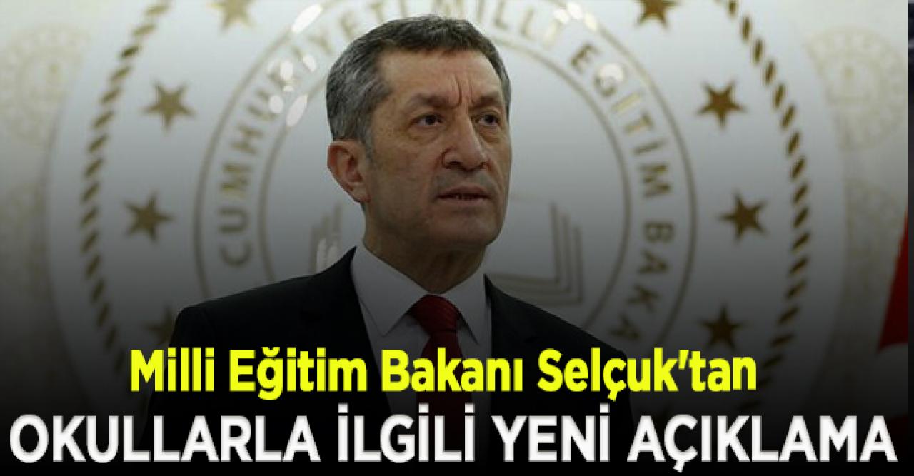 Milli Eğitim Bakanı Ziya Selçuk, "15 Şubat'tan itibaren toplumun, ailelerin, annelerin, babaların, çocukların durumuna baktığımızda okulların artık mümkün olduğu kadar daha yüksek bir kapasiteyle açılması gerektiği noktasında bir kararlılığımız var" açıklamasında bulundu.
