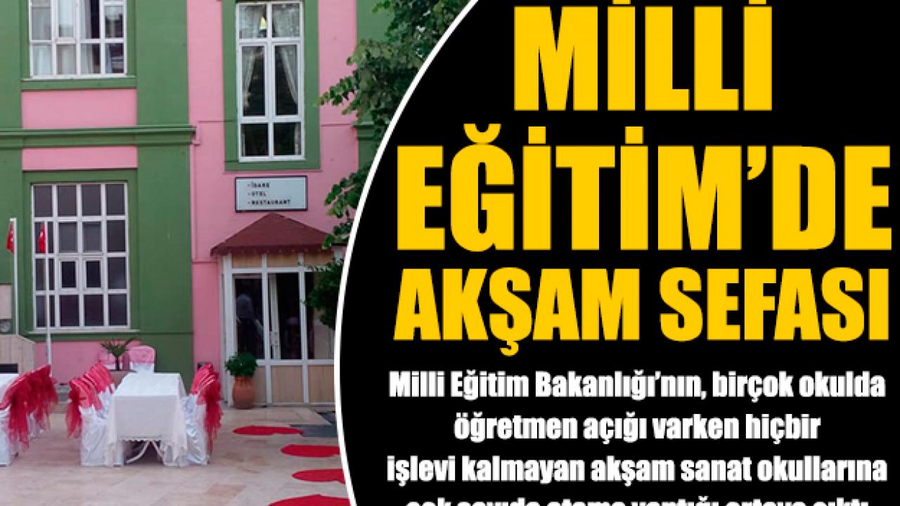 Milli Eğitim Bakanlığı’nın, birçok okulda öğretmen açığı varken hiçbir işlevi kalmayan akşam sanat okullarına çok sayıda atama yaptığı ortaya çıktı. Ataması yapılan öğretmenlere herhangi bir görev verilmediği, buna rağmen ek ders ücreti ödendiği öğrenildi.