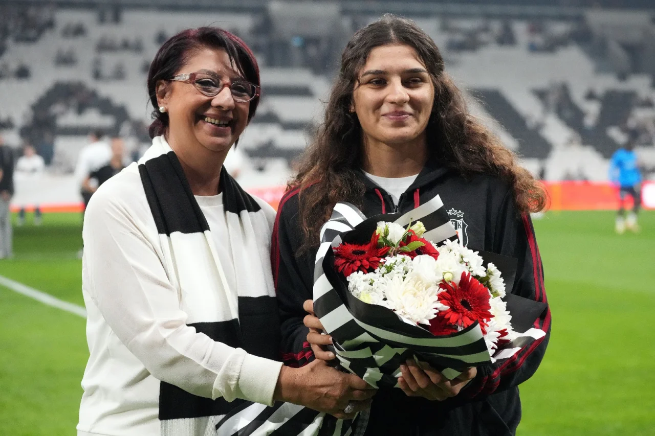 Beşiktaşlı taraftarlar da 23 yaşında ki genç güreşçiye alkış ve tezahüratlarla sevgilerini gösterdi. Maç öncesinde unutulmayancak olan anlar yaşandı. Milli güreşçimiz Nesrin Baş'ı Beşiktaş yönetiminin bu hareketi ve taraftarların desteği onurlandırdı.