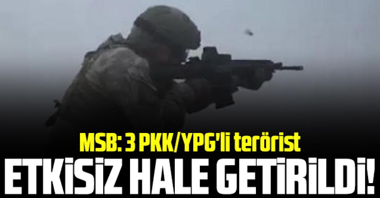 Bakanlığın Twitter hesabından yapılan açıklamada, "Terör ve teröristle mücadelemiz etkin ve kararlı şekilde aralıksız devam ediyor. Irak’ın kuzeyindeki Pençe Yıldırım ve Zap bölgelerinde 2, Barış Pınarı bölgesinde 1 olmak üzere toplam 3 PKK/YPG’li terörist etkisiz hale getirildi" denildi.