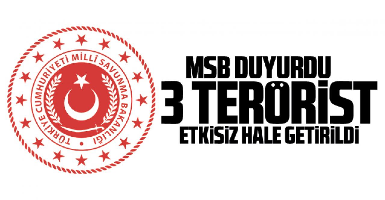 Milli Savunma Bakanlığı yaptığı açıklamada 3 PKK'lı teröristin etkisiz hale getirdiğini duyurdu.