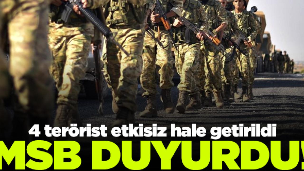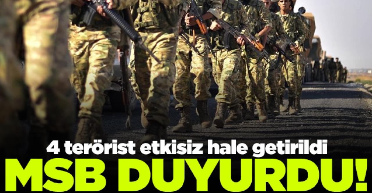 Milli Savunma Bakanlığı yaptığı açıklamada Barış Pınar bölgesine sızma girişiminde bulunan 4 teröristin etkisiz hale getirildiğini duyurdu.
