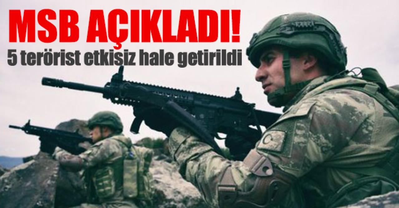 Milli Savunma Bakanlığı, Barış Pınarı bölgesine taciz ateşi açan ve sızma girişiminde bulunan 5 PKK/YPG'li teröristin etkisiz hale getirildiğini duyurdu.