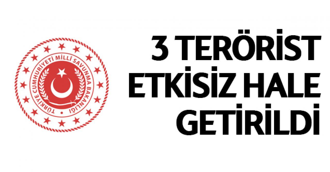 Milli Savunma Bakanlığı, Barış Pınarı bölgesinde saldırı hazırlığındaki 3 PKK/YPG'li teröristin etkisiz hale getirildiğini açıkladı.