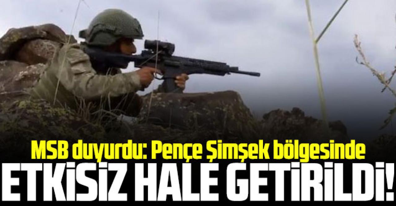 MSB'nin Twitter hesabından yapılan açıklamada, "Mehmetçiğin nefesi, teröristlerin ensesinde! Irak'ın kuzeyindeki Pençe Şimşek bölgesinde tespit edilen 2 PKK'lı terörist etkisiz hale getirildi. Teröristlerin inlerine girmeye, sığınaklarını yerle bir etmeye devam edeceğiz" ifadeleri kullanıldı.