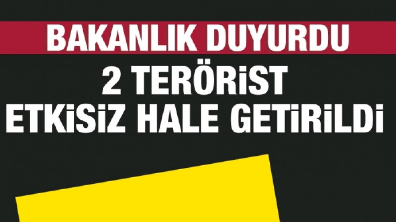 Milli Savunma Bakanlığı yaptığı açıklamada Zap bölgesinde 2 teröristin etkisiz hale getirildiğini duyurdu.