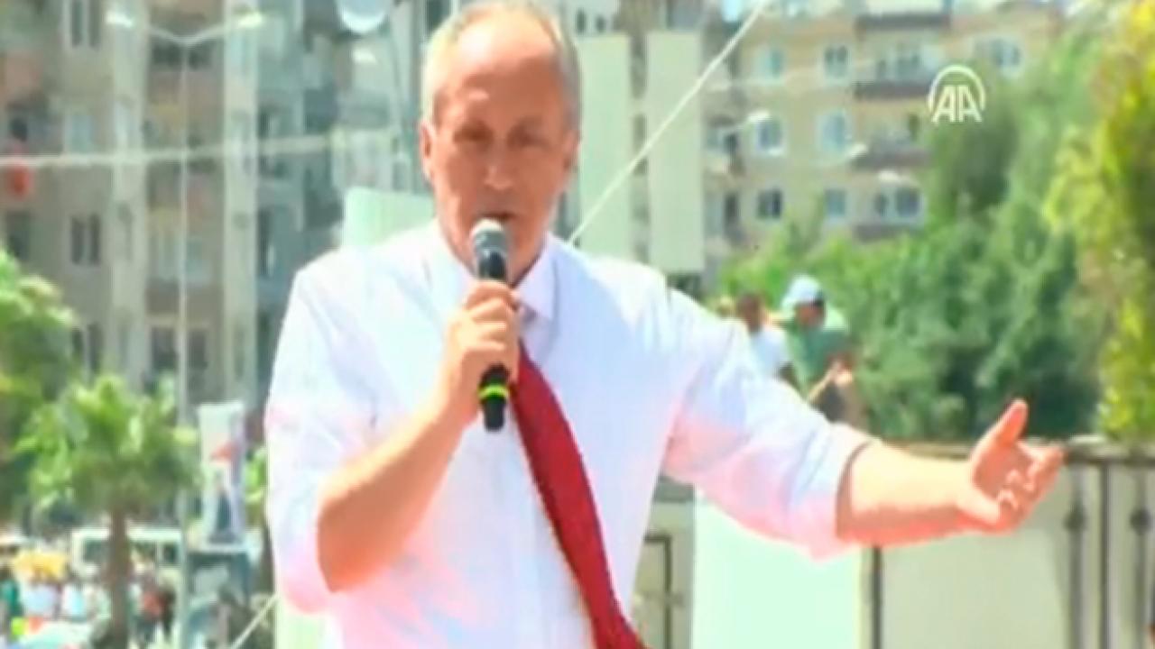 Cumhuriyet Halk Partisi’nin (CHP) cumhurbaşkanı adayı Muharrem İnce Hatay’da halka seslendi. İnce Hatay’ın ardından saat 17:30 Antalya’da bir miting düzenleyecek.