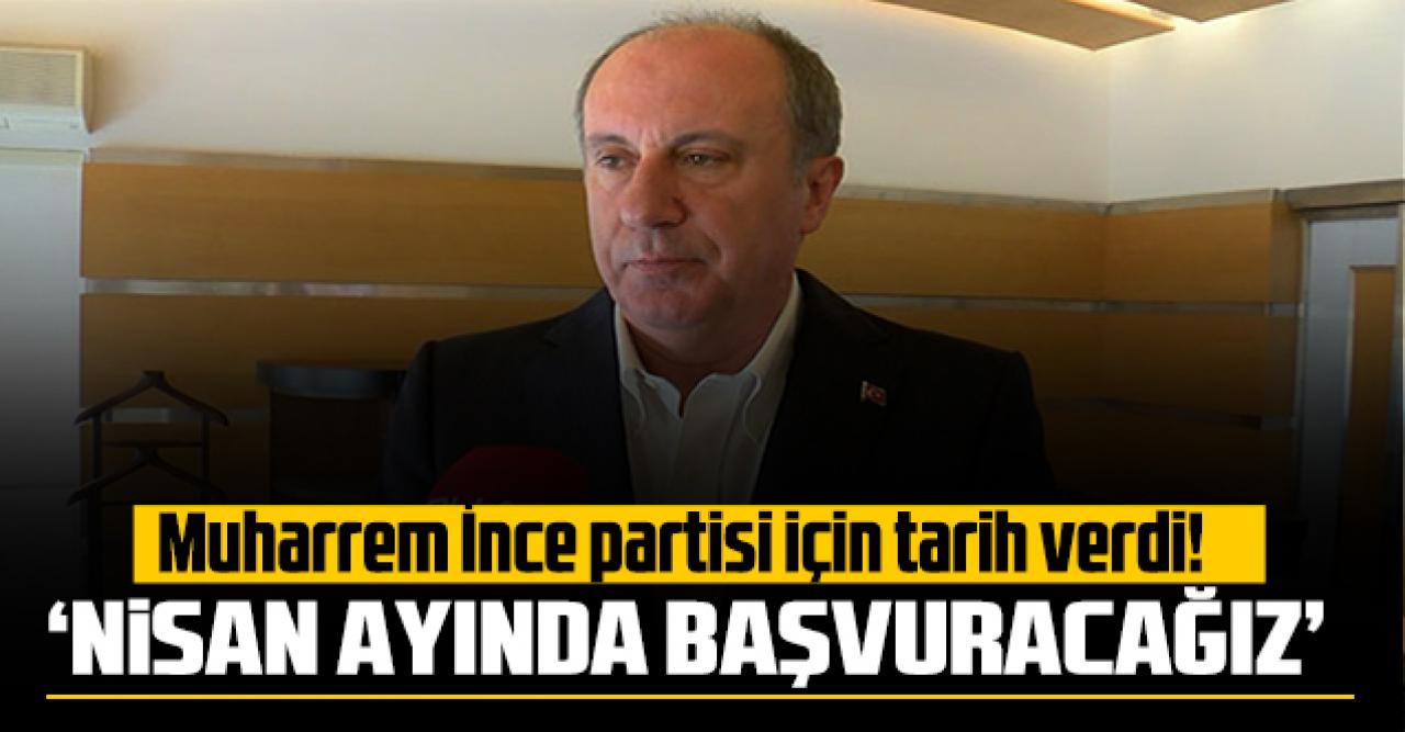 İnce, nisanda partiyi kuracaklarını ve İçişleri Bakanlığı'na başvurunun yapılacağını belirterek, "Kurucular ve yüksek disiplin kurulu ile birlikte nisan ayı içerisinde İçişleri Bakanlığına başvuracağız. Resmi kuruluş farklı bir şey, açılış toplantısı yapmak başka bir şey, açılışımızı bayramdan sonra yapacağız. Ramazan ayı içerisinde açılış yapmayı düşünmüyoruz. Nisan ayı içerisinde başvurumuzu İçişleri Bakanlığı'na yapacağız. Tüzüğümüzü, programımızı vereceğiz. Yine nisan ayı içerisinde partinin adını, logosunu, parti meclisi salonumuzda tanıtacağız" dedi.