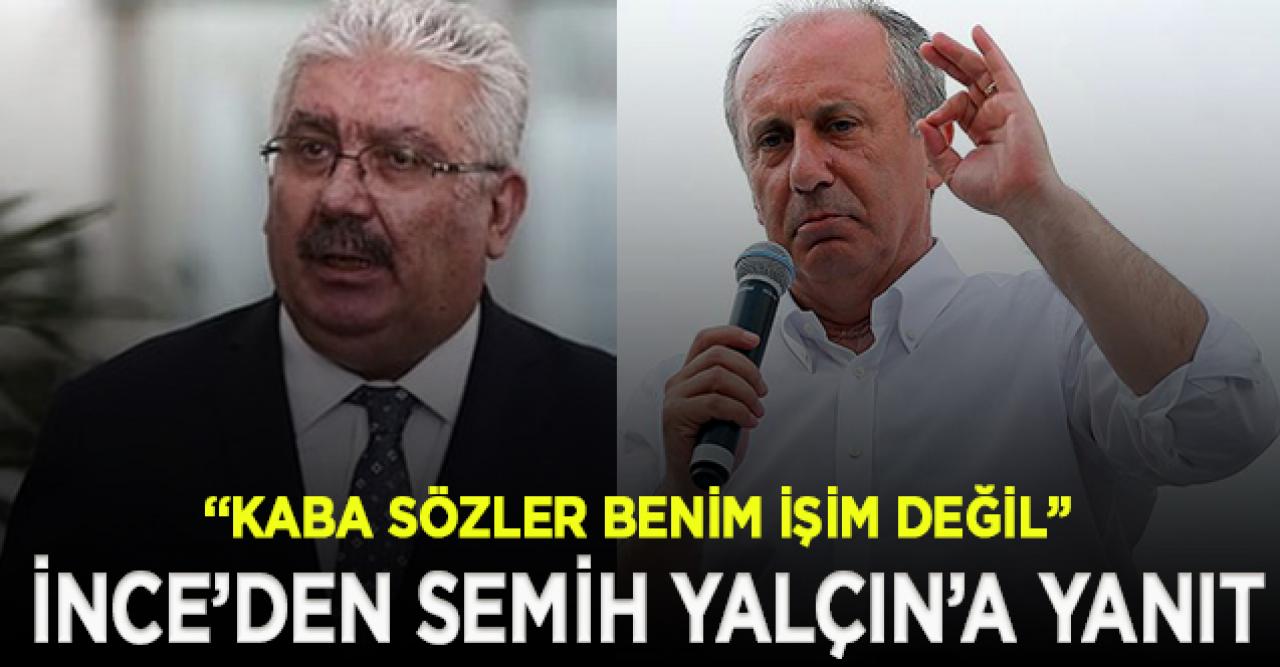 Muharrem İnce, Türk Tabipler Birliği ve MHP Genel Başkanı Devlet Bahçeli ile ilgili açıklamalarını eleştiren MHP Genel Başkan Yardımcısı Semih Yalçın’ın, “Çapınıza bakmadan MHP ve liderine dil uzatan sizin gibi siyaset bukalemunları teker teker temizlenecek” çıkışına da yanıt verdi.