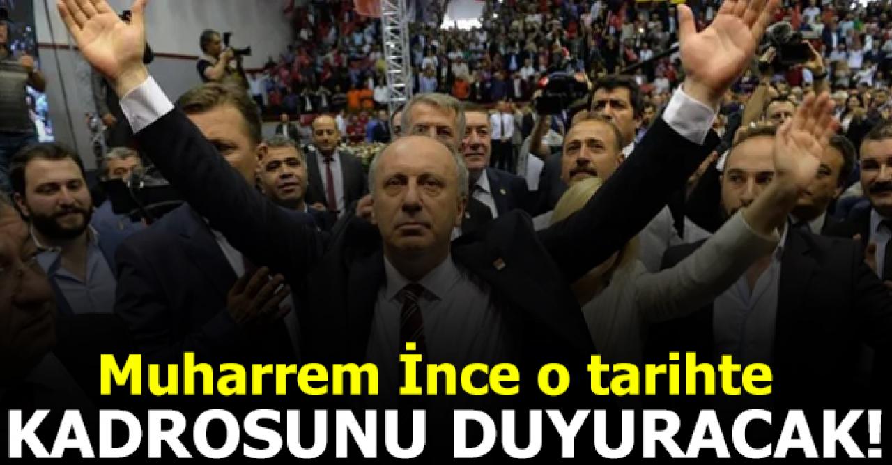 Barış Yarkadaş, 4 Eylül'de Sivas'tan Memleket Hareketi'ni başlatan Muharrem İnce'nin 29 Ekim'de kadrosunu açıklayacağını duyurdu. İnce'nin kadrosunda olacağı konuşulan bazı isimleri de paylaşan Yarkadaş, şunları kaydetti: