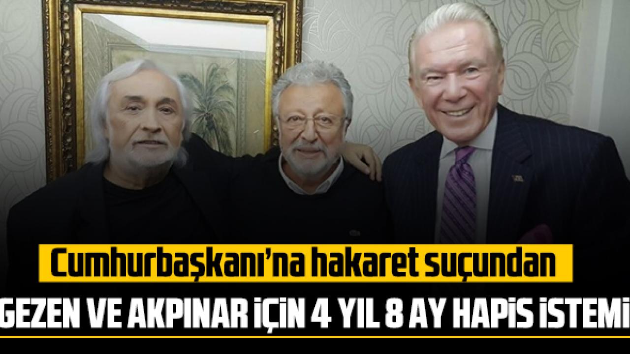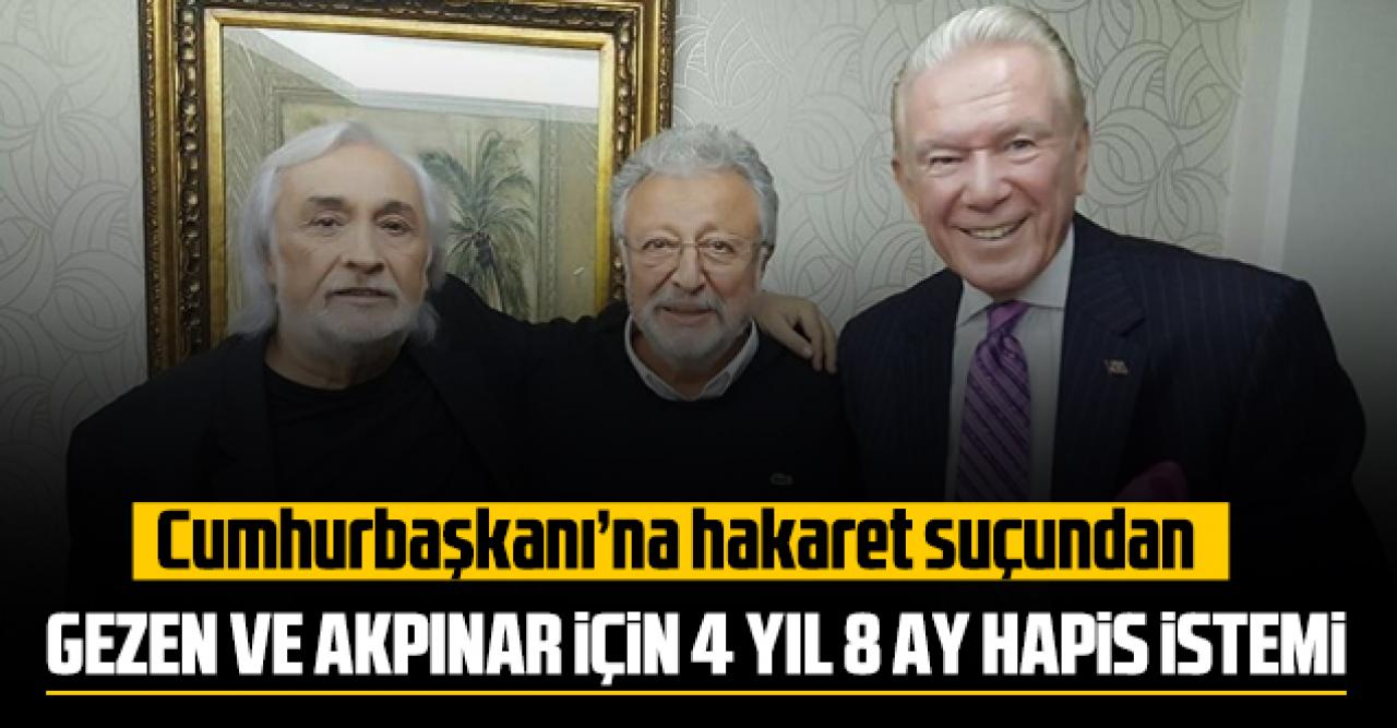 Müjdat Gezen ve Metin Akpınar’a, "Cumhurbaşkanı’na hakaret" suçundan ayrı ayrı 4 yıl 8 aya kadar hapis cezası istendi.