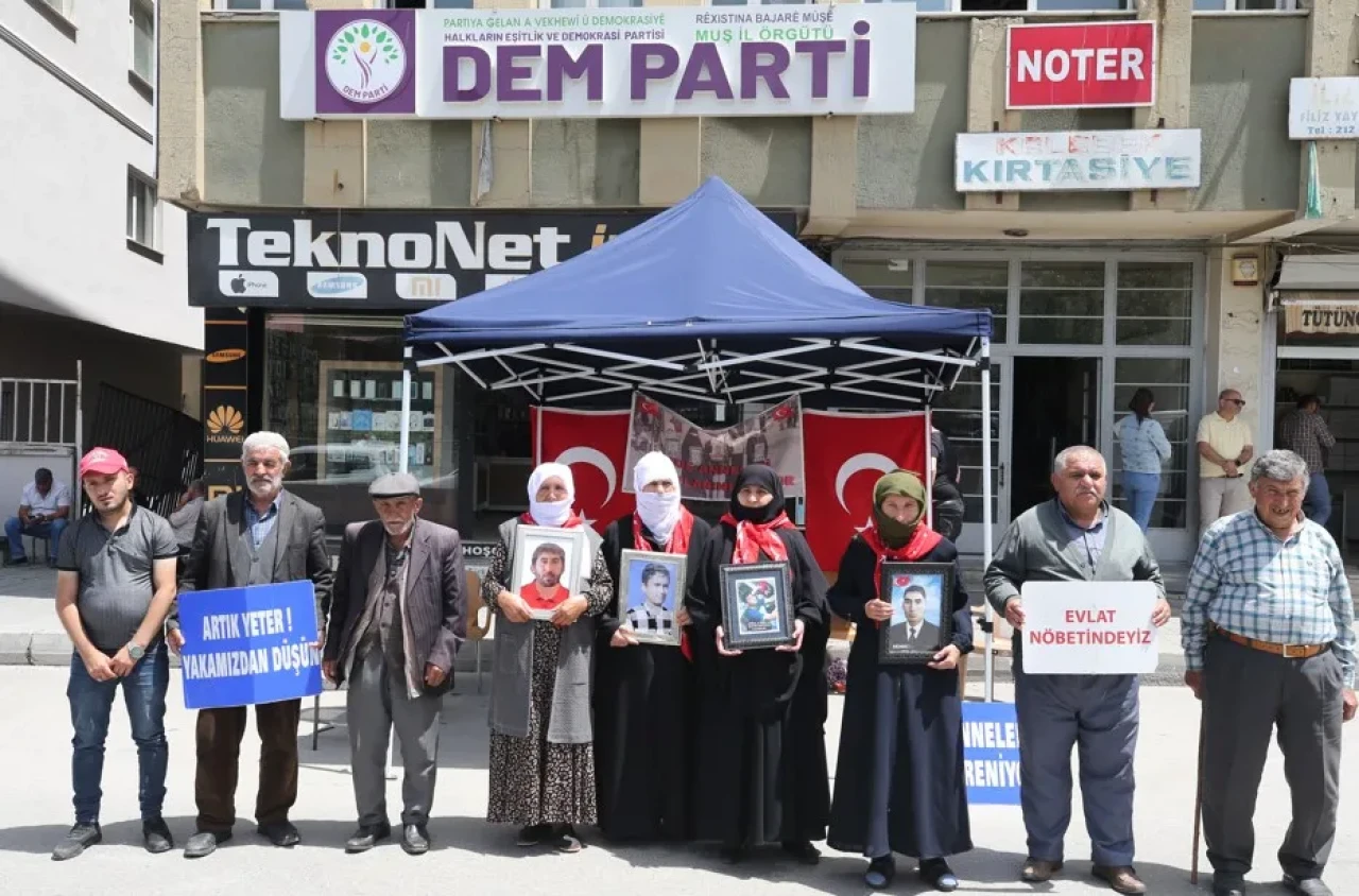 Her çarşamba olduğu gibi bu hafta da Muş’ta DEM Parti İl Başkanlığı binası önünde toplanan acılı aileler, yıllardır süren hasretin sona ermesi için seslerini yükseltti. Çocuklarının PKK tarafından kandırılarak dağa götürüldüğünü belirten anne ve babalar, “Yeter artık, çocuklarımızı geri verin” diyerek teröre karşı güçlü bir duruş sergiledi.