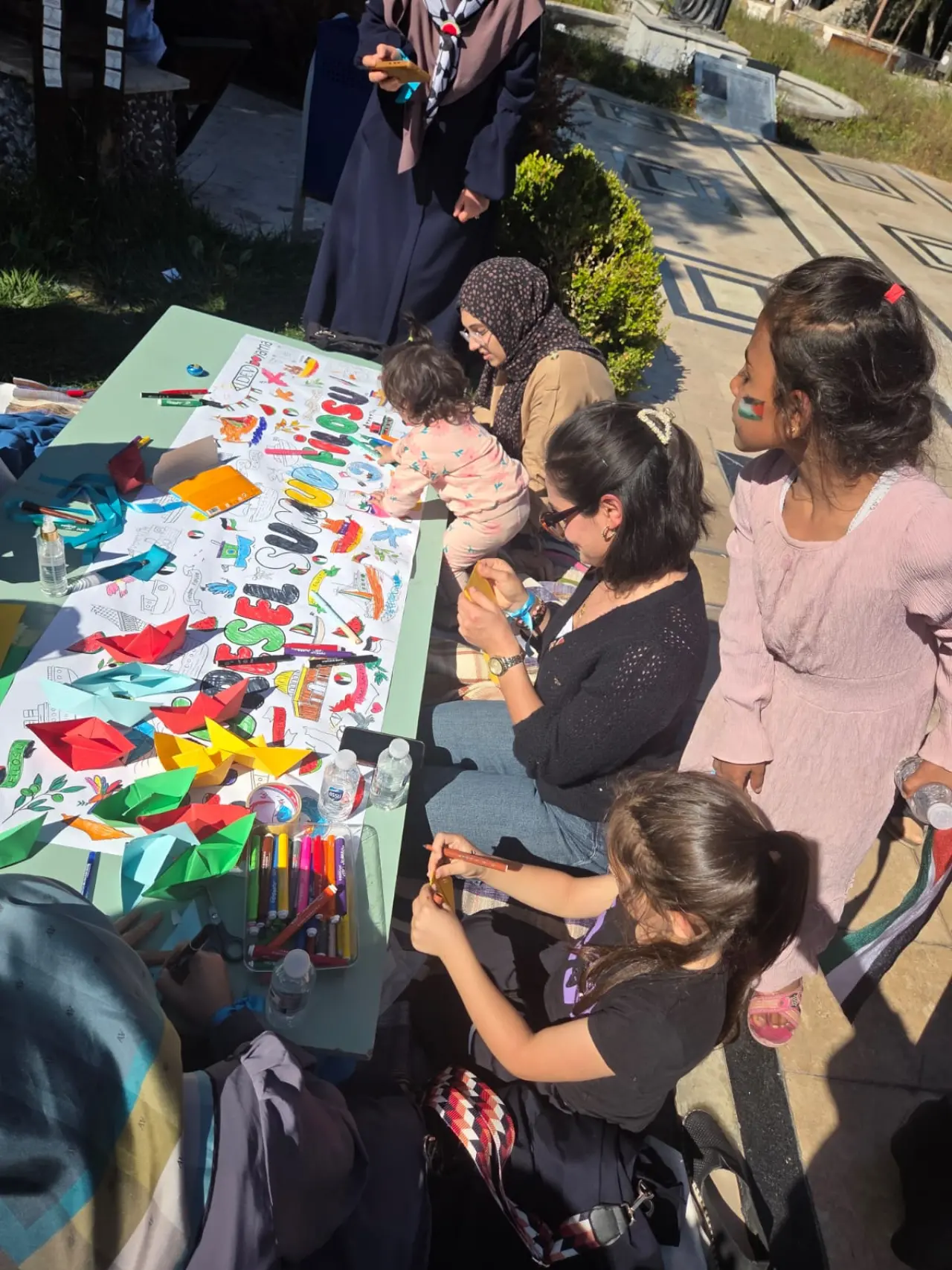 Haber-Ayşegül Akyüz Yahşi / Büyük ilgi gören etkinlik alanında, Global Sumud Filotilla yazılı boyama standı kuruldu. Filistin'i simgeleyen figürlerin sergilendiği alanda, katılımcılar özgürlük filosuna destek notlarını bıraktı. Eylemin en dikkat çeken bölümü ise Sumud Filosu'na dahil olan yelkenlilerin maketlerinin sergilendiği köşe oldu.