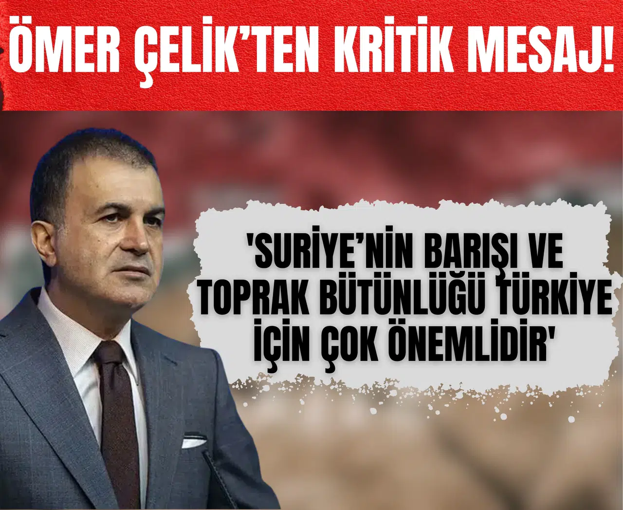 Ömer Çelik sözlerini şöyle tamamladı: “Suriye’de Kürt, Arap, Türkmen ve diğer tüm kardeşlerimizin kaderi bir, geleceği birdir. Zaman, doğru adımlar atma zamanıdır. Cumhurbaşkanımızın siyaseti, ayrımcılığı reddeden ve kardeşliği ön plana çıkaran bir siyasettir.”