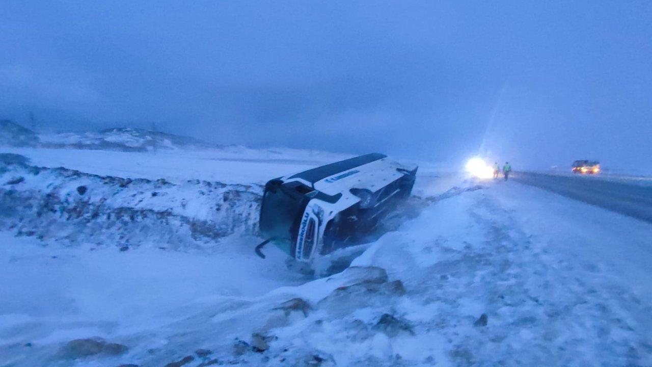 AĞRI'DA YOLCU OTOBÜSÜ DEVRİLDİ