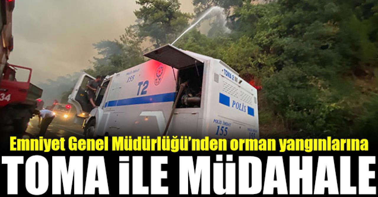 Türkiye'nin farklı noktalarında çıkan orman yangınlarından 145'i kontrol altına alınırken, 4 ildeki 9 yangına ise müdahale sürüyor. Havadan ve karadan yapılan yangın söndürme çalışmalarına Emniyet Genel Müdürlüğü de destek veriyor. Bu kapsamda, çok sayıda TOMA yangın bölgelerine sevk edildi. TOMA'lar ile yol kenarından yangınlara müdahale edildi. Emniyet Genel Müdürlüğü'nce, TOMA'ların yangınlara müdahale ederken çekilen görüntü ve fotoğrafları Twitter'dan paylaşılarak, "TOMA'larımız yangınlara müdahale için görev başında. Alevlerle savaşımız devam ediyor. Orman yangınları ile mücadeleye aralıksız destek veriyoruz" denildi.