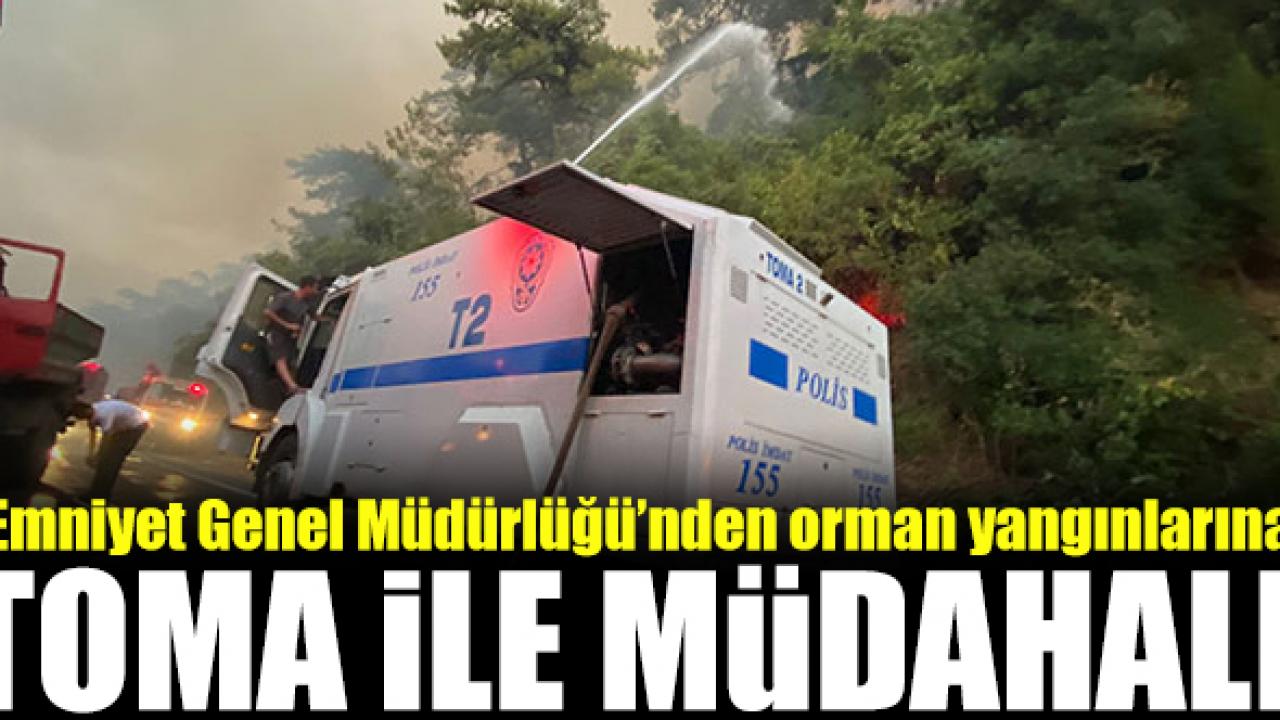 Emniyet Genel Müdürlüğü bünyesinde bulunan toplumsal olaylara müdahale araçları (TOMA) orman yangınlarının söndürülmesi çalışmalarına destek veriyor.