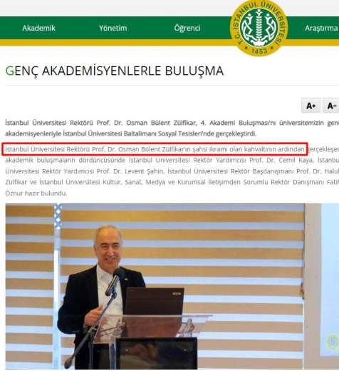 Daha olayın üstünden iki gün geçmesine rağmen rektör tepki çeken bir duyuruya daha imza attı. Bu kez de üniversitenin resmi sitesinden yapılan "Genç akademisyenlerle buluşma" başlıklı duyuruda "İstanbul Üniversitesi Rektörü Prof. Dr. Osman Bülent Zülfikar’ın şahsi ikramı olan kahvaltının ardından gerçekleşen..." ifadeleri tepki çekti.