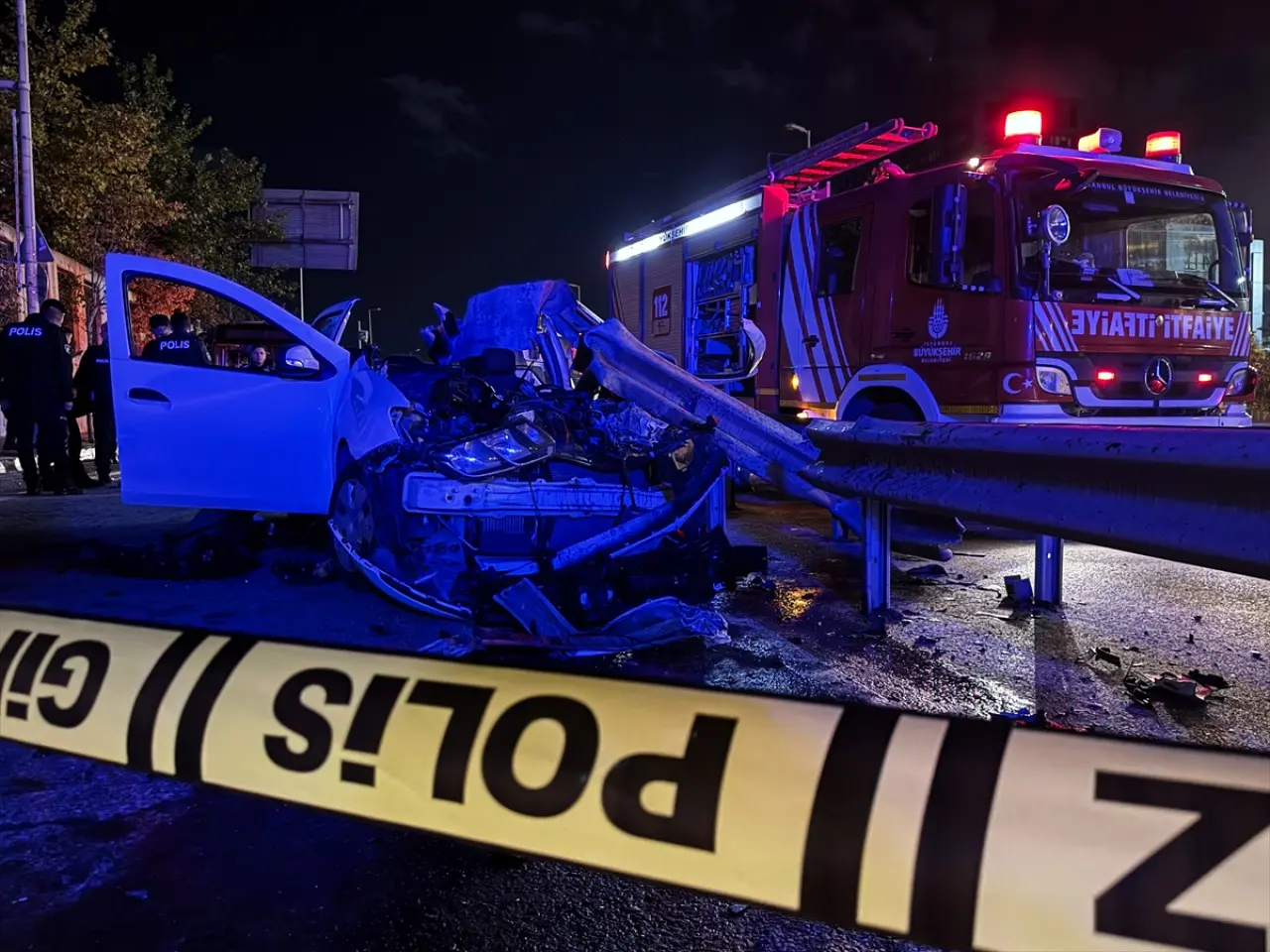 Ümraniye'de kontrolden çıkarak bariyerlere saplanan otomobildeki 1 kişi öldü, 1 kişi ağır yaralandı.