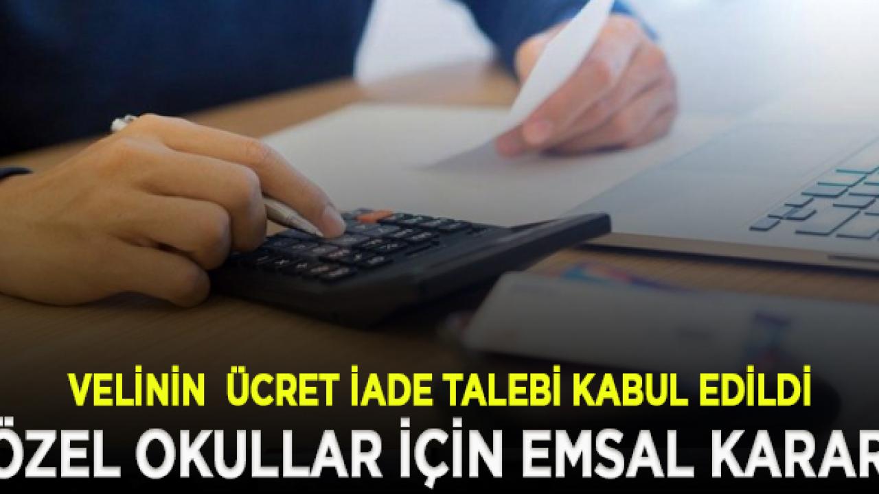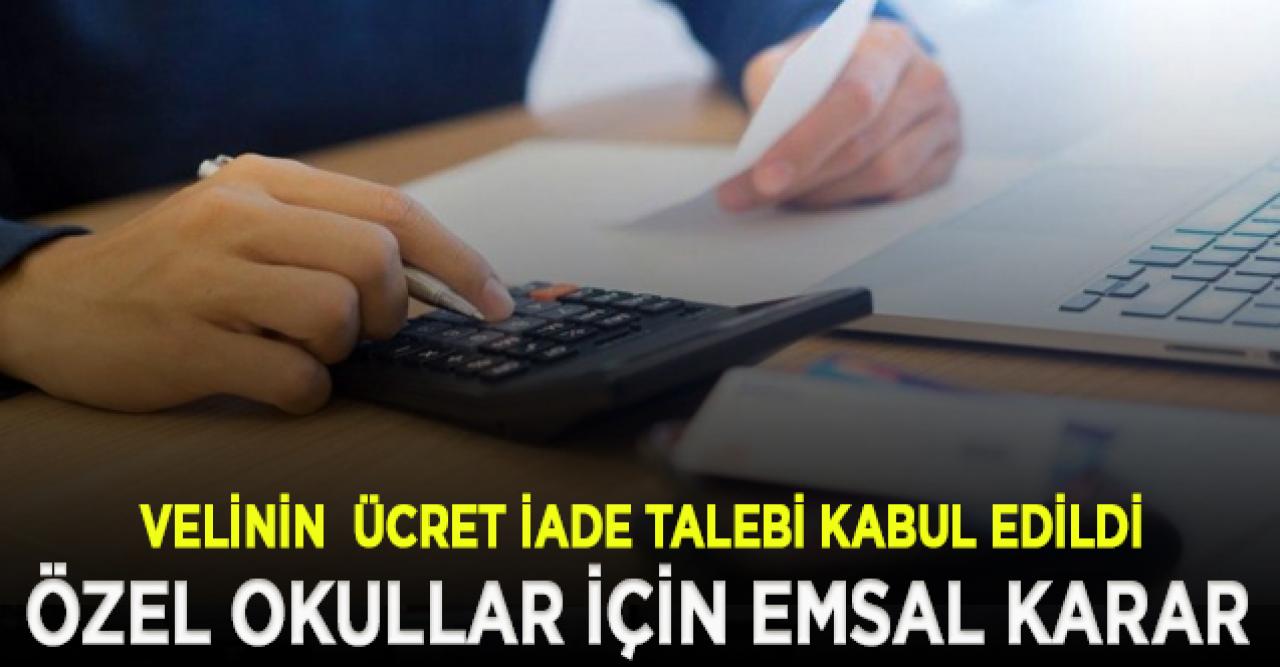 Emsal olacak kararda veliye, okula gidilmeyen süreye karşılık gelen 7 bin 579 lira ücret iadesi yapılacak.Kayseri'de yaşayan Hamza Y., geçen dönemki eğitim-öğretim yılında çocuğunu özel okula kaydettirdi. Hamza Y., çocuğunun okul ücretini peşin ödedi. Mart ayında koronavirüs salgınının ortaya çıkmasının ardından, Hamza Y'nin çocuğu yüz yüze eğitim göremedi. Hamza Y. de 15 Mart 2020 tarihinden sonraki günler için ödediği ücretin tarafına iade edilmesini istedi. Özel okul ise, Mart ayından sonra uzaktan eğitim yapıldığı gerekçesiyle ücreti iade etmedi.