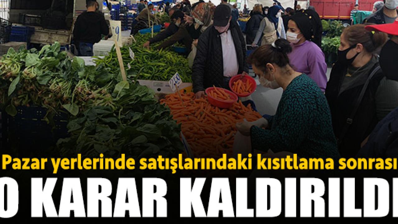 Genelgede, pazarlara ilişkin Bilim Kurulu önerileri doğrultusunda ilgili bakanlıklarca belirlenen kurallara da yer verildi. Buna göre; mahalle ve semt pazarlarında giyim, oyuncak, çiçek, fide, zücaciye, nalburiye gibi ihtiyaç malzemelerinin satışına getirilen kısıtlama kaldırıldı. Pazar esnafı için daha önce getirilen her bir tezgah ve sergi arasında en az 3 metre mesafe olması şartı ile tezgah başında duran kişinin maske kullanması şartı, bu malzemelerin satışı için de geçerli olacak.