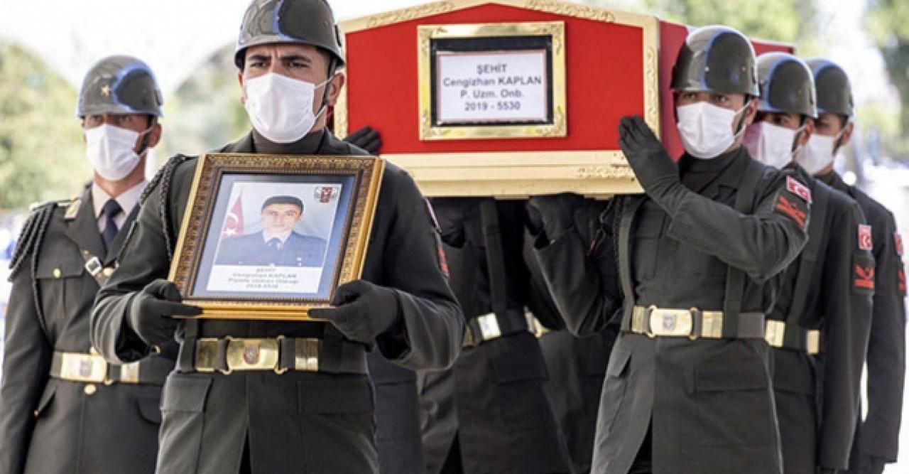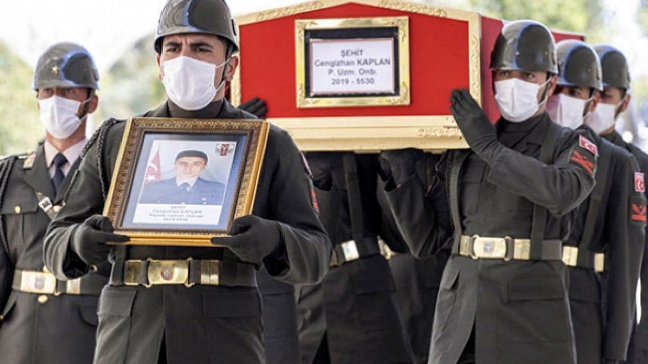 Pençe Şimşek Harekâtı bölgesinde dün teröristler tarafından yerleştirilen el yapımı patlayıcının infilak etmesi sonucu şehit olan 3 askerden Piyade Uzman Onbaşı Cengizhan Kaplan'ın cenazesi, bugün memleketi Ankara'ya getirildi. Şehit için bugün öğle namazı sonrası Ahmet Hamdi Akseki Camii'nde tören düzenlendi. Törene, şehidin ailesi ve yakınları ile Cumhurbaşkanı Yardımcısı Fuat Oktay, CHP Genel Başkanı Kemal Kılıçdaroğlu, MHP Lideri Devlet Bahçeli, Milli Savunma Bakanı Hulusi Akar, Adalet Bakanı Abdulhamit Gül, Milli Eğitim Bakanı Mahmut Özer, Genelkurmay Başkanı Orgeneral Yaşar Güler, Ankara Valisi Vasip Şahin ve çok sayıda kişi katıldı.