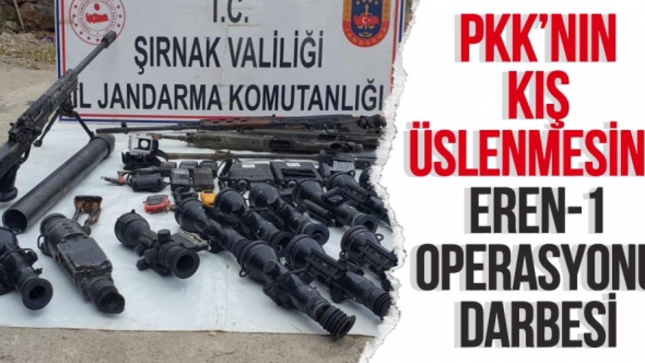 Eren-1 Kış Operasyonları kapsamında Şırnak Bestler- Dereler bölgesinde tespit edilen mağara, sığınak ve depolarda; 1 Adet 60 mm.lig havan, 1 Adet Zagros silahı, 1 Adet Dragunov keskin nişancı tüfeği, 6 adet EYP, 3 adet M-16 Piyade Tüfeği, 8 adet el bombası, 5 kg. patlayıcı madde, 103 adet roketatar sevk fişeği, 2 adet araç telsizi, 5 adet el telsizi, yaşamsal gıda ve malzeme, çok sayıda silah ve bu silahlara ait mühimmat, örgütsel doküman, tıbbi malzeme, çeşitli mutfak, giyim, temizlik, kırtasiye, hırdavat ile yaşam malzemeleri ele geçirildi.