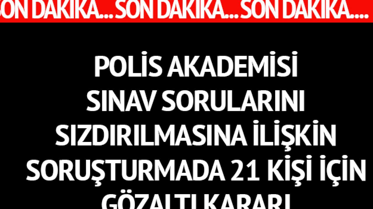 2012'deki Polis Akademisi sınavı sorularının FETÖ mensuplarınca sızdırılmasına ilişkin soruşturma kapsamında 21 kişi hakkında gözaltı kararı verildi.