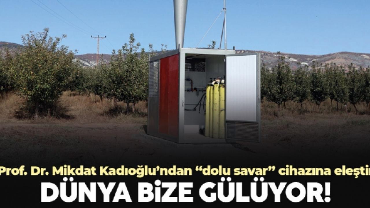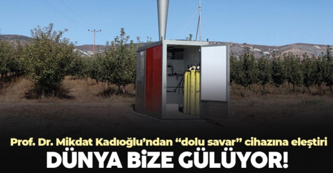 Prof. Dr. Mikdat Kadıoğlu, "Dolu savar işi Bulgaristan'da yapılıyor ama, meteorolojinin, bilimin en ileri olduğu ülke Amerika. Gelişmiş ülkelerde dolu savar diye bir şey yok. Dolu savar fotoğraflardan göreceğiniz gibi, uzun boru gibi bir şey. Yağışı havalarda kamyon lastiğinin patlaması gibi ses çıkarıyor. Bu ses güya 10 kilometre ötede, bulutun içindeki dolu tanelerini küçültüyor. Etilen gazı olduğu söyleniyor. Makine 10 kilometreden doluyu görüyor, etilen gazı ile de dolu yağmura çevriliyormuş. Düşünebiliyor musunuz? Buradan oraya etilen gazı gönderiyorsunuz, o gaz havada dağılmadan nasıl gidecek? Tamamen umut tacirliği” dedi.