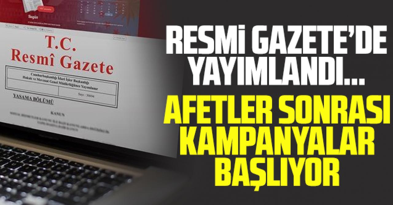 Cumhurbaşkanı Recep Tayyip Erdoğan'ın imzasıyla yayımlanan karara göre, Türkiye'de yakın zamanda yaşanan yangın ve seller ile bundan sonra meydana gelecek benzeri afetler sonrasında uygulanmak üzere, genel hayatı olumsuz etkileyen şartların iyileştirilmesine katkı sağlaması amacıyla insani yardım kampanyası başlatılacak.