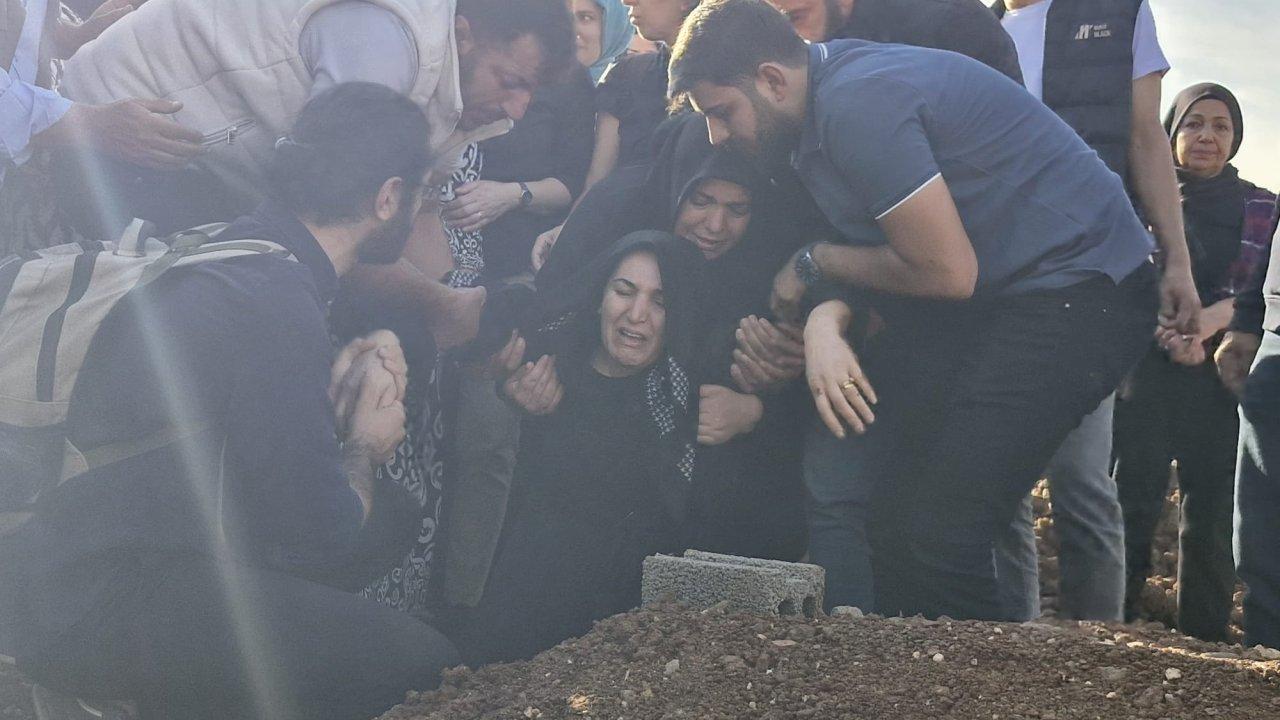 Cenazede babası Nizamettin Kabaiş ve bazı yakınları Rojin'in mezarına kapanıp gözyaşı döktü.