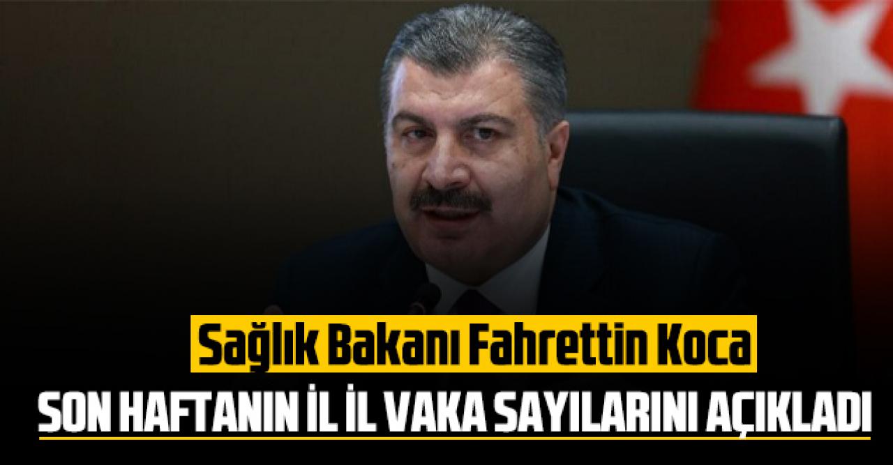 Sağlık Bakanı Fahrettin Koca, illere göre haftalık vaka sayılarında dikkat çeken şehirleri açıkladı. Bakan Koca, Twitter hesabından yaptığı açıklamada, "Geçen haftaya göre vaka sayısı 100 bin nüfusta en çok azalan illerimiz; Bayburt, Erzincan, Trabzon, Karabük ve Hatay. En çok artış olan illerimiz ise Ordu, Giresun, Samsun, Tokat ve Bolu. Normalleşmek için daha çok emek vermek gerekiyor" dedi.