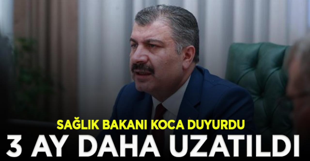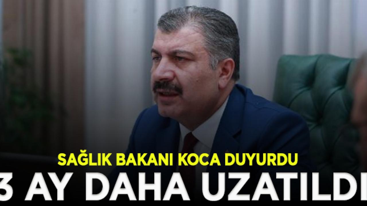 Sağlık Bakanı Fahrettin Koca, "Sağlık çalışanlarımıza yapılan ek ödeme süresi pandemi nedeniyle 3 ay daha uzatılmıştır. Canla başla verilen mücadelenin karşılığı elbette bu değil, biliyorum." dedi.