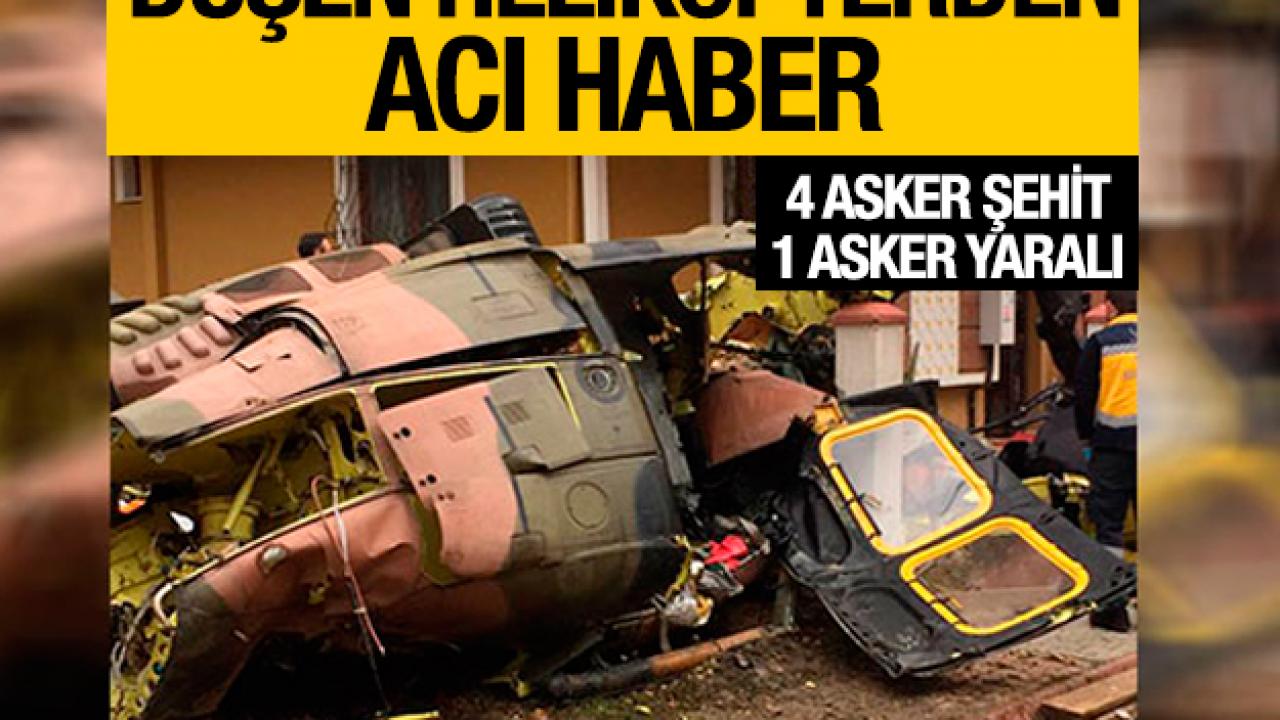 İstanbul Sancaktepe'de mahalle arasına helikopter düştü. Olay yerine çok sayıda itfaiye ve polis ekibi sevk edildi. İlk belirlemelere göre 4 asker şehit oldu, bir asker ise yaralandı.