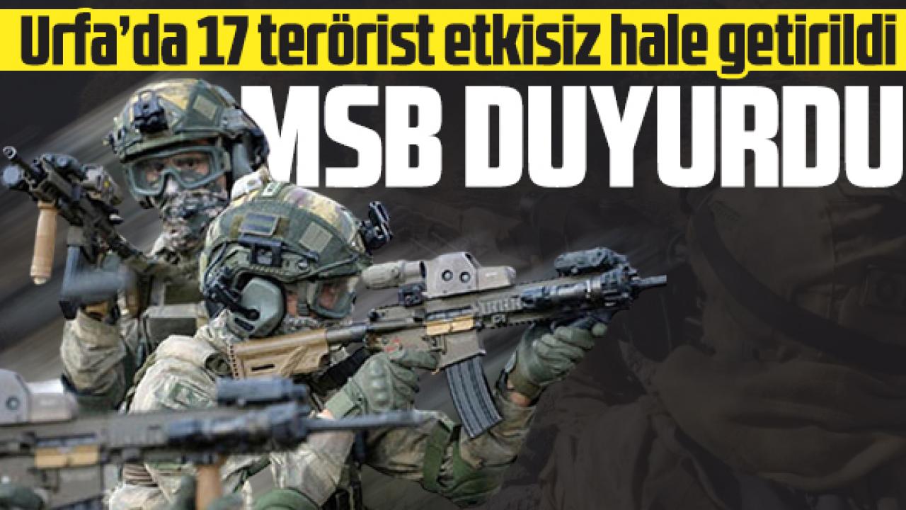 Milli Savunma Bakanlığı Şanlıurfa'da 17 teröristin etkisiz hale getirildiğini duyurdu.