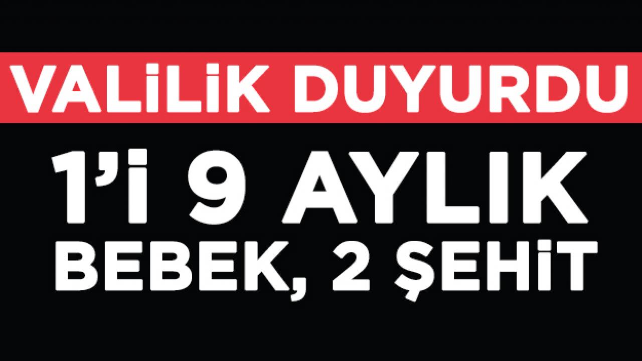 Şanlıurfa Valiliği yaptığı açıklamada biri bebek iki kişinin şehit düştüğünü açıkladı.