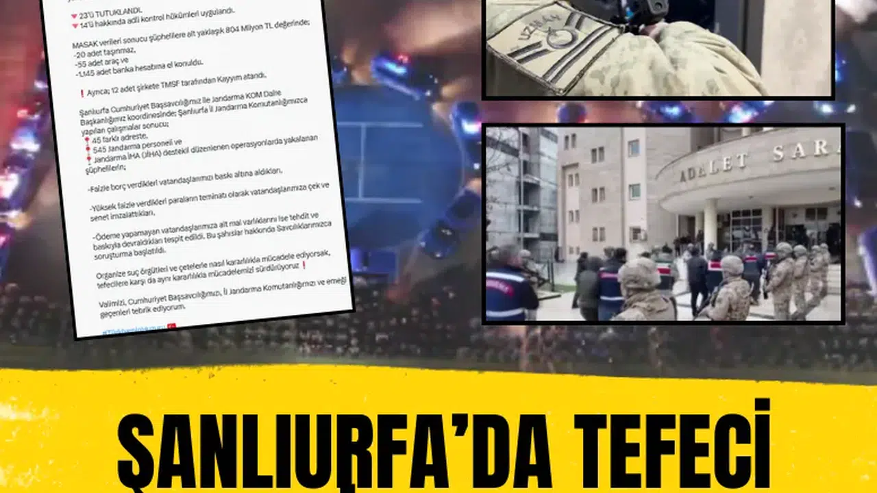 İçişleri Bakanı Ali Yerlikaya, Şanlıurfa’da vatandaşları faiz kıskacına alarak haksız kazanç sağlayan tefeci organize suç örgütüne yönelik düzenlenen geniş çaplı operasyonlarda 37 şüphelinin yakalandığını, 23’ünün tutuklandığını açıkladı. Devletin tüm imkânlarıyla yürütülen operasyonlarda, 4,2 milyar liralık hesap hareketi ortaya çıkarılırken, suçtan elde edilen mal varlıklarına da büyük ölçüde el konuldu.