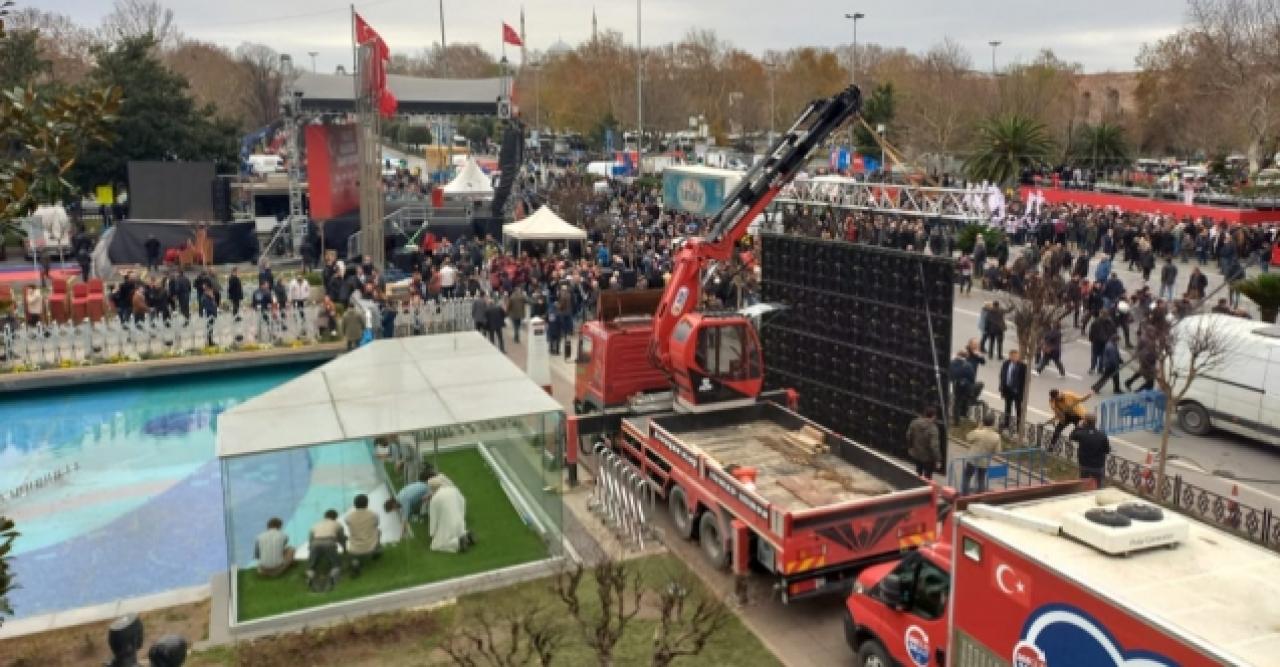 Saraçhane binası önünde hazırlıklar tam gaz devam ederken, vatandaşlarda yavaş yavaş toplanmaya başladı…