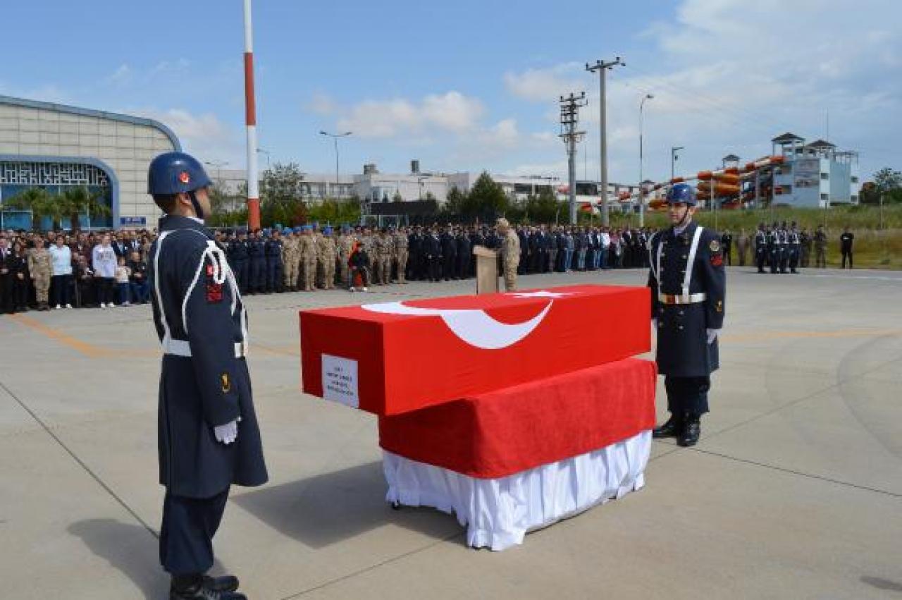 Şehidin Türk bayrağına sarılı cenazesinin tören alanına getirilmesinin ardından, 1 dakikalık saygı duruşunda bulunuldu ve öz geçmişi okundu. İl Müftüsü Ali Hayri Çelik'in duasının ardından Astsubay Üstçavuş Mehmet Gündüz'ün cenazesi, askeri uçakla memleketi Tokat'a uğurlandı.